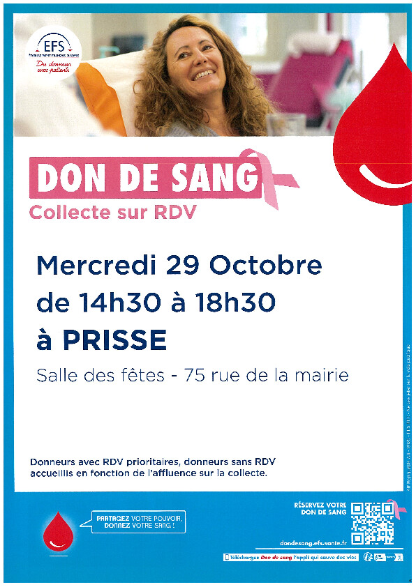 L’Etablissement Français du Sang organise une collecte de sang